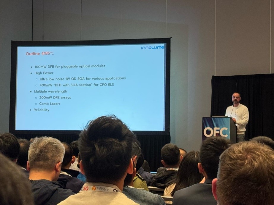 在 OFC 2025 的最后一場會議上Janina Rautert 博士登臺介紹了我們在量子點激光技術方面的最新進展——這一次再次被選為享有盛譽的截止日期后論文會議。