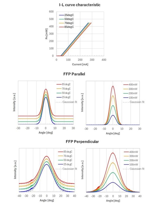 單模激光二極管在 405 nm 波長下被廣泛用作藍光光盤的拾取光源,近年來在工業傳感器、醫療設備、測量和分析儀器、3D掃描儀、3D打印機和其他應用中得到了廣泛應用。隨著應用的擴展,對高功率、更穩定的光束的激光二極管的需求也在增加。2023年,Ushio開始批量生產和發貨 HL40161/163系列,這是一種波長405 nm的175mW單模激光二極管,但這次,通過優化激光二極管芯片設計,我們成功提高了光學輸出功率,開發了 HL40213MG,這是行業最高輸出功率(400mW)的單模激光二極管。采用先進的晶體生長技術和獨特的光學限制控制結構,該產品即使在400mW 的高光學輸出功率下也能保持單橫模,同時確保在工作溫度(-5℃~85℃)范圍內均勻穩定的光束質量和高可靠性。該產品即使對低反射率下也能實現高精度測量,并有望進一步提升工業傳感器以及測量/分析設備(如廣域3D掃描儀和高速3D打印機)的性能。