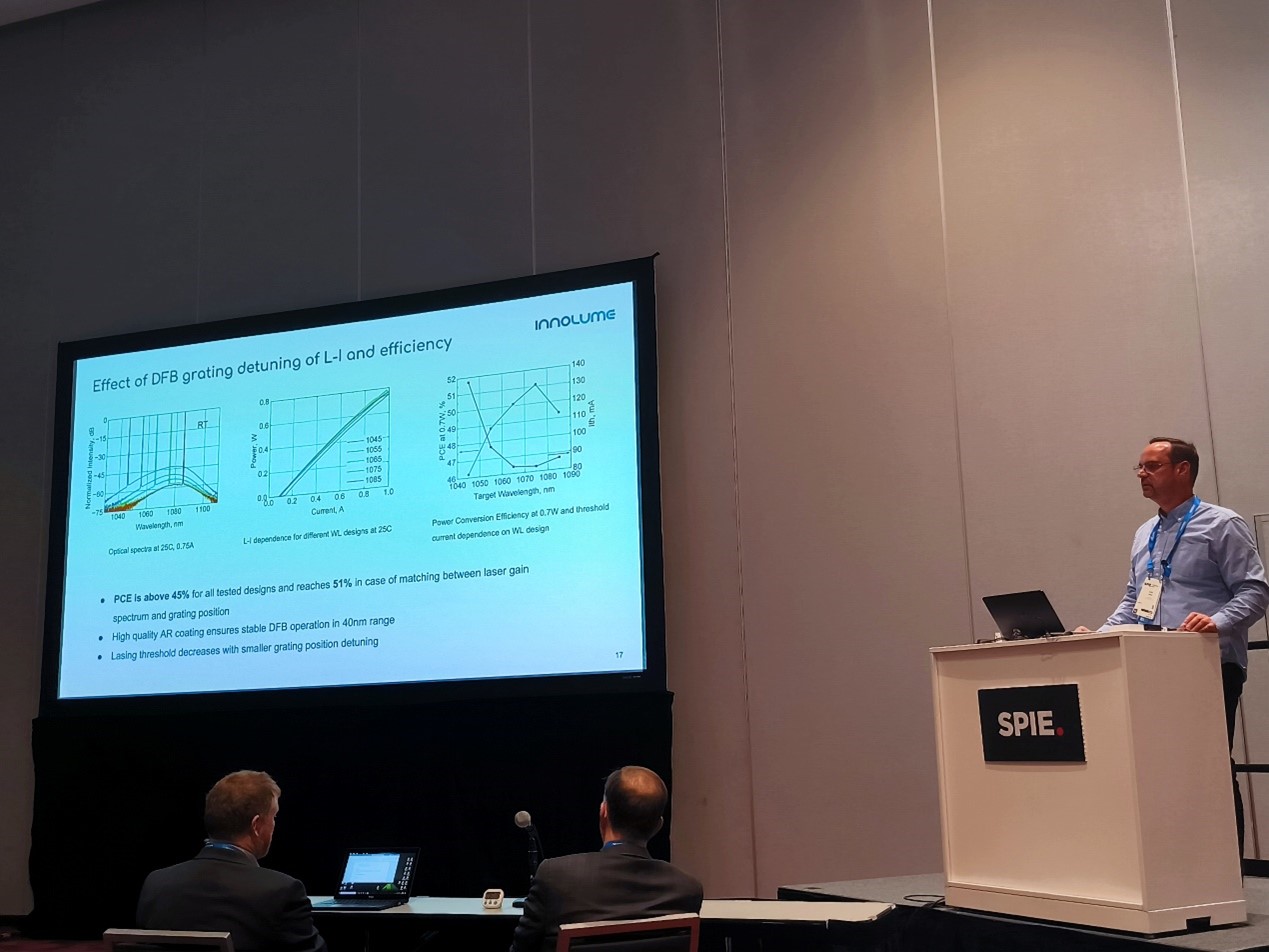 Innolume在SPIE Photonics West 2025上展示了1W 1.06μm的DFB激光器,其效率創歷史新高