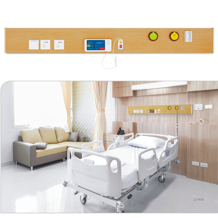 尺寸Size高220mm 厚70mm 壁厚2.2mmI 材質 Texture優質鋁合金I 表面 Surface靜電噴塑I 特點 Characteristic?雙腔結構,氣電分離;?上下小圓角組合,可選不同顏色 組合,美觀大方;?每床標配護眼LED閱讀燈、氧氣、 負壓終端、幵關各1個,十孔插座 2個;?可選配空氣終端、