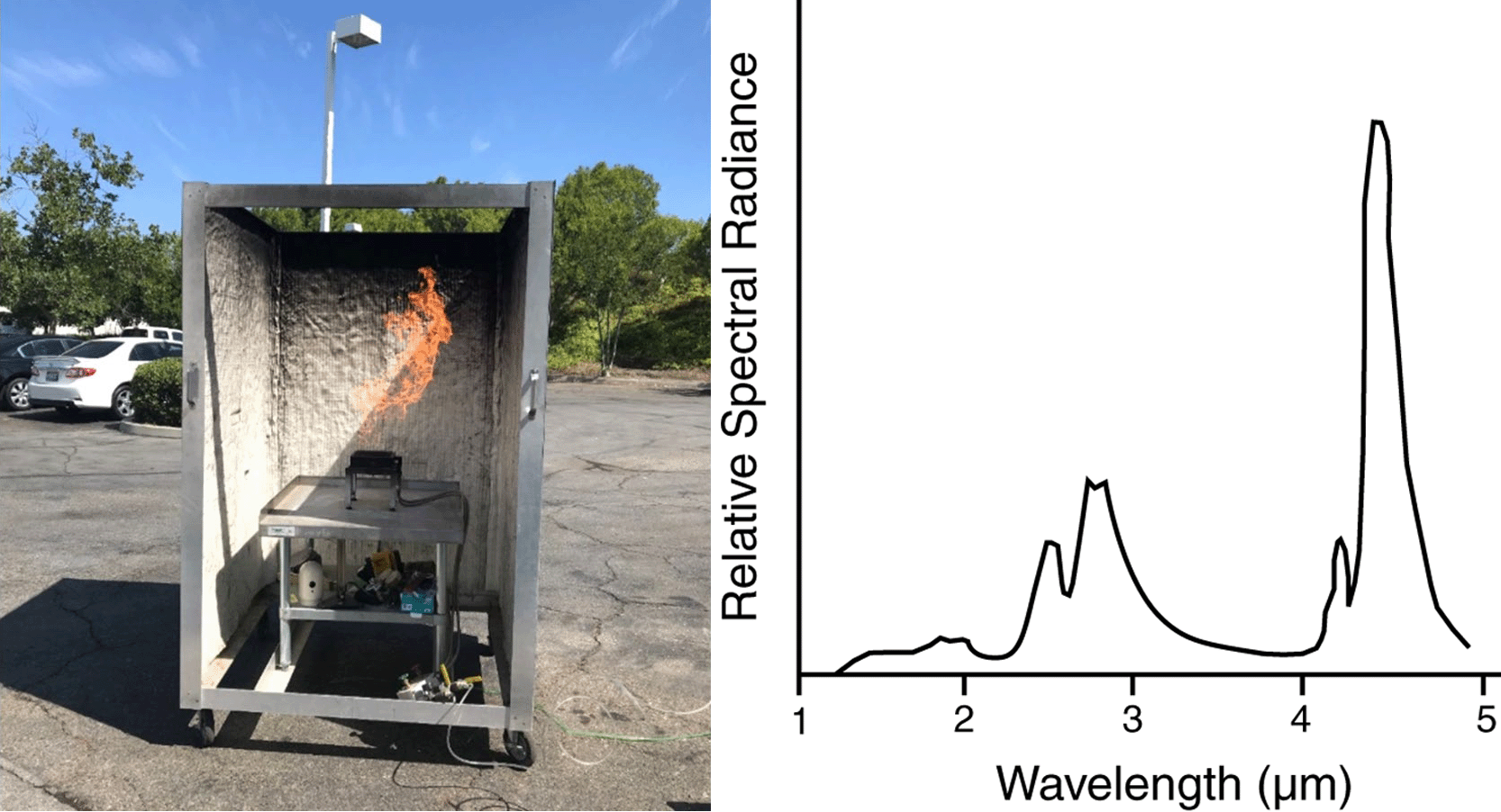 火焰探測器為了盡可能避開日光的干擾,其探測波長主要在紅外和紫外波段。它的工作原理主要有兩種,一種是直接探測火焰燃燒產(chǎn)生的紅外光或紫外光來檢測火焰,常用的探測器包括SiC(185-380nm)、InGaAs(0.8-2.6μm)、PbS(1-3.4μm)、熱電堆等。然而烤箱和閃電等干擾源也會發(fā)出類似光信號,從而導致誤報。